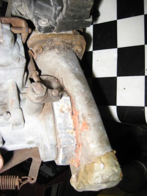 They very painfully adapted a carburetor to an FI manifold for a T3, and used lots of orange RTV in the process.   Sadly this is the 2nd such conversion Ive seen recently and its not the same car....scary.